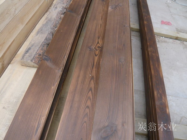 經表面炭化處理、純天然油漆噴涂的木材還具有防水、防潮、防腐、防蛀、耐磨、耐高溫、抗酸堿性等優點,缺點:含水率高、使用一段時會收縮開裂。