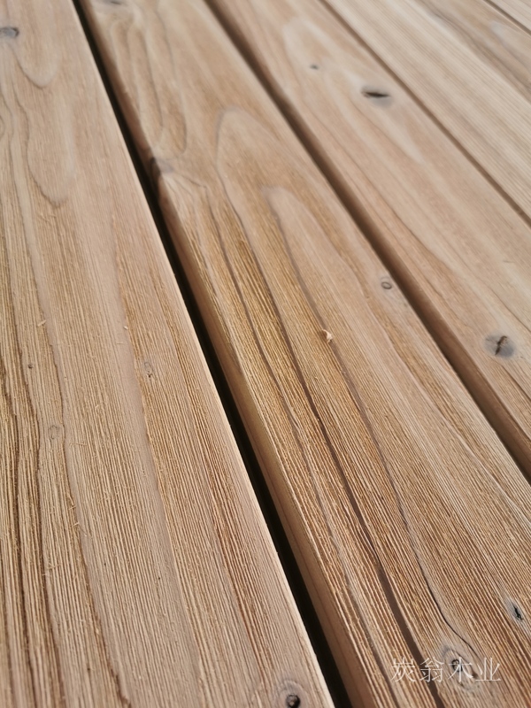深度炭化木為在阻隔氧化與水解反應的環境中,為了改善木材的尺寸穩定性、耐久性等性能,在高達180℃~220℃溫度下80小時 對木材進行熱解改性處理的木材。炭化木,必須區別于木炭、普通干燥木材、水降解木材、表面炭化木、或進、出口檢疫中熱處理除蟲后的包裝用板材的熱改性木材。